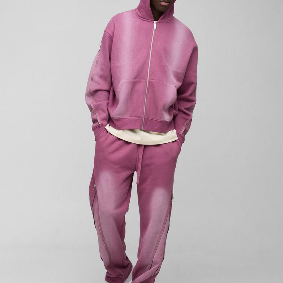 Men's Acid Wash Tracksuits 100% Cotton Thick Pullover with Applique Embroidery Patch Full Tracksuits Sets for Winter