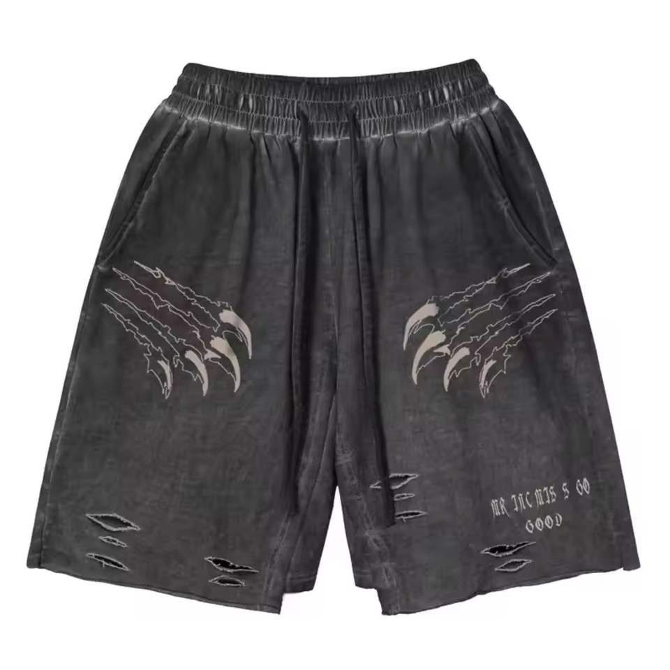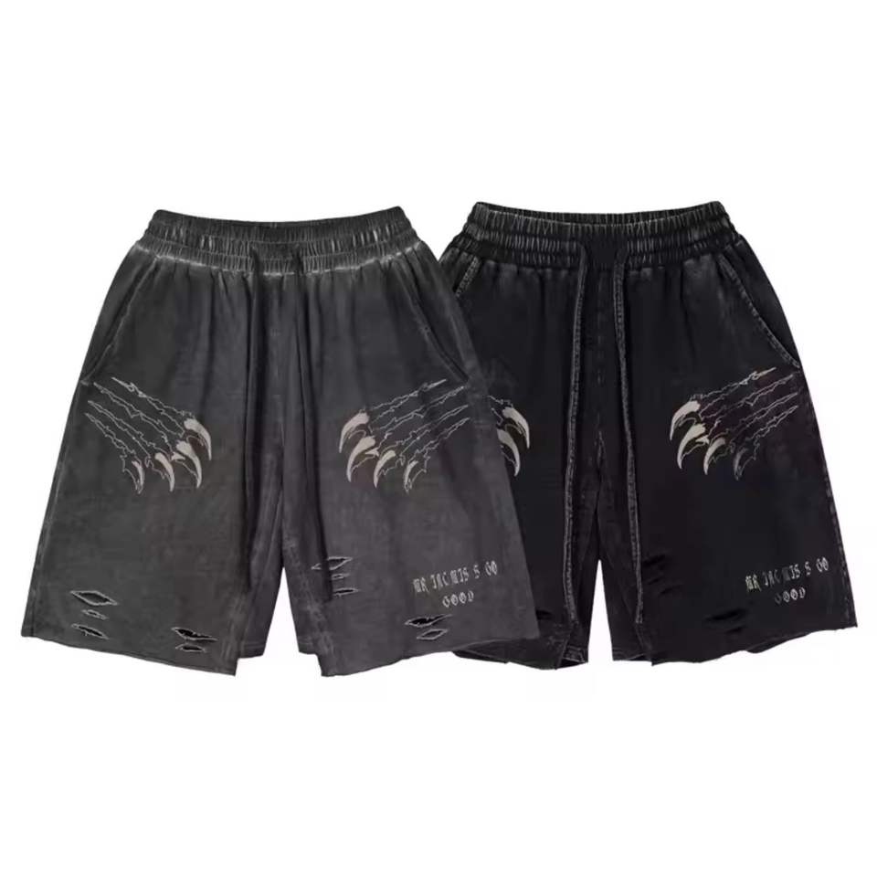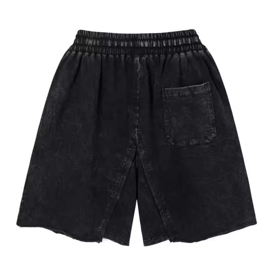 กางเกงขาสั้นผ้าฝ้ายฟอกสีกรดสำหรับผู้ชายผ้าเมช6XL ตาข่ายแบบรูระบายสไตล์ลำลองออกแบบได้ตามต้องการใช้ในยิม