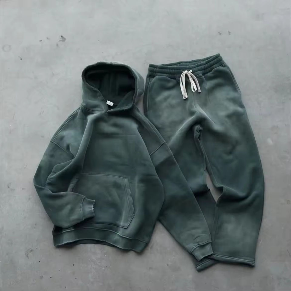 เสื้อครอปมีฮู้ดผู้ชายและกางเกงวินเทจขาตรงผ้าฝ้ายเฮฟวี่เวทเสื้อสวมหัวมีโลโก้ของคุณเอง