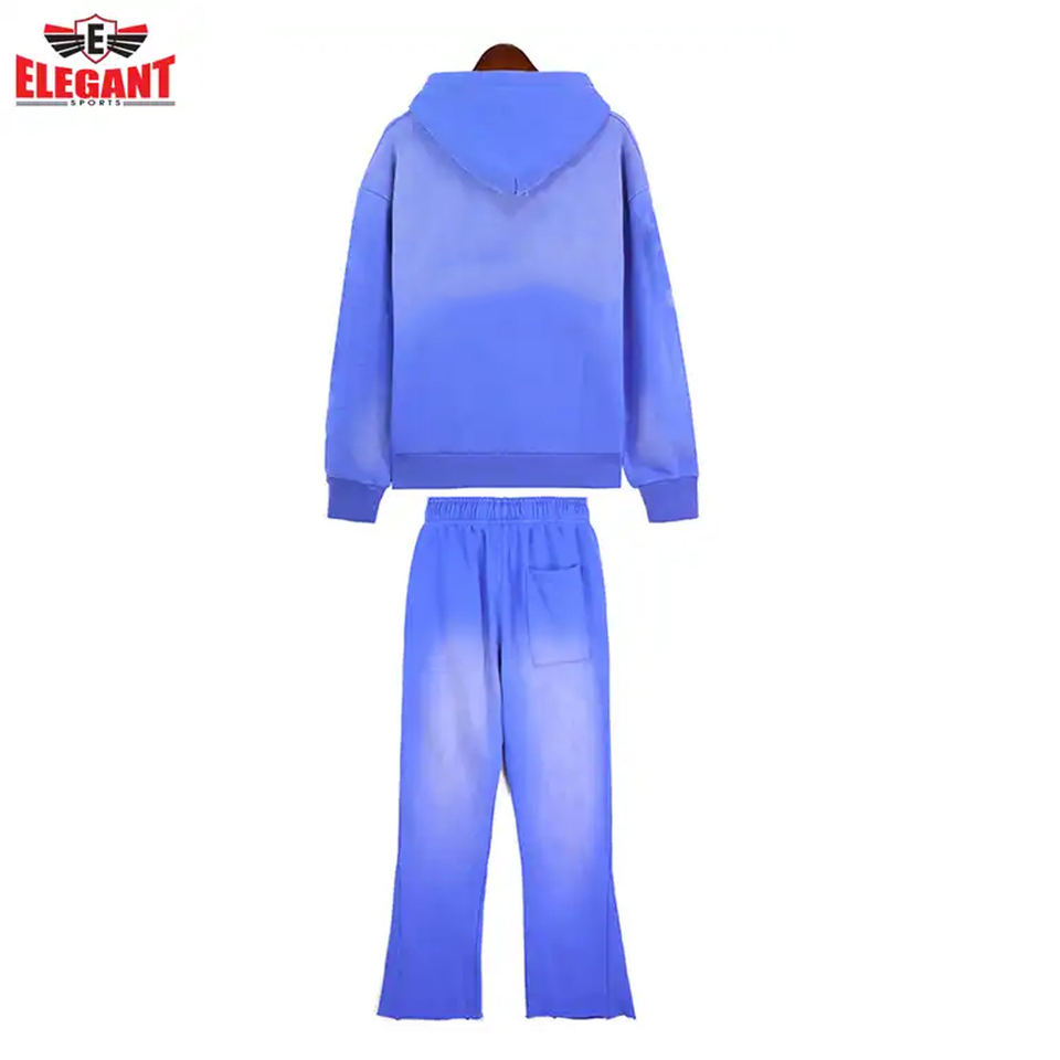 Men's Acid Washed Pullover Sweat Suit Elegant Sports Outer Wear Flared Style Jogging Tracksuit Custom Contrast Color Plus Size