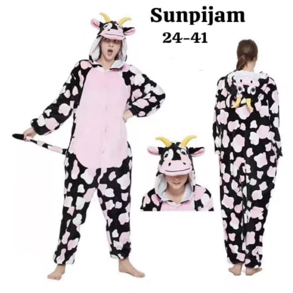 ชุดนอนผ้าสักหลาดวันพีชรูปสัตว์การ์ตูนวัวผู้ใหญ่สำหรับผู้ชาย, ชุดนอนยี่ห้อ Suzhen ขนาด24-41สำหรับใส่ในบ้านฤดูใบไม้ร่วงฤดูหนาวที่อบอุ่นใส่ได้ทั้งชายและหญิง