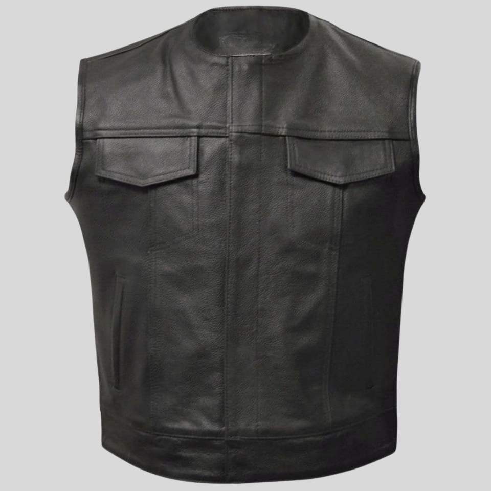 เสื้อกั๊กหนังแท้ผู้ชายแบบสองด้าน สไตล์ไบค์เกอร์ ปิดด้วยซิป ระบายอากาศ ป้องกันรังสียูวี สไตล์ไฮสตรีท รับผลิตตามแบบ (OEM) สำหรับฤดูใบไม้ร่วง มีกระเป๋า