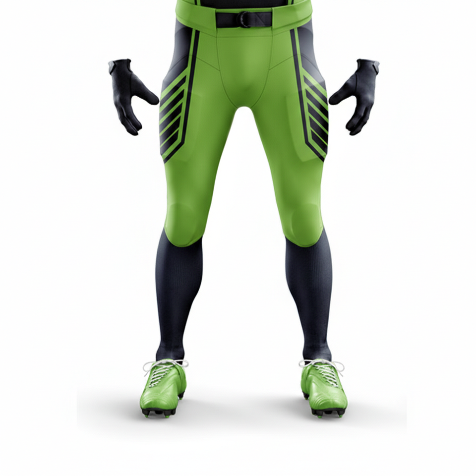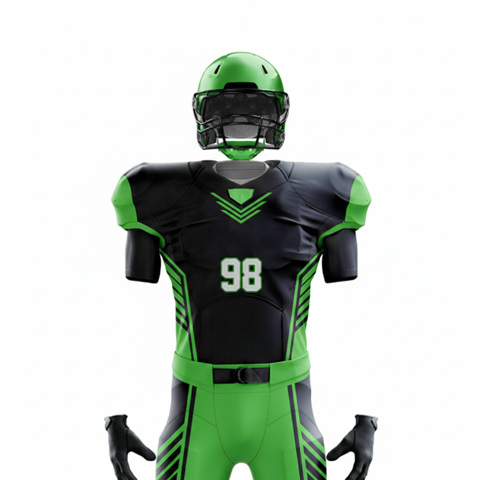 ชุดอเมริกันฟุตบอลชาย โพลีเอสเตอร์ 100% พิมพ์ลายแบบซับลิเมชั่น แห้งเร็ว ระบายอากาศได้ดี สกรีนชื่อทีม โลโก้ ตำแหน่ง ได้ตามสั่ง กางเกงขาสั้น