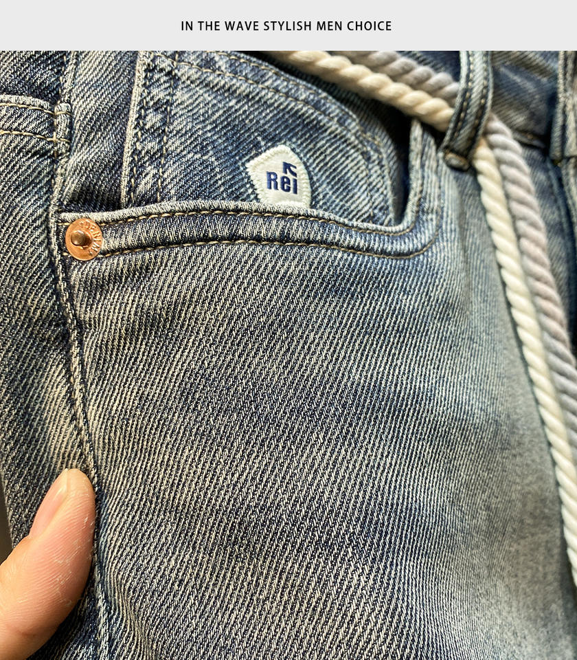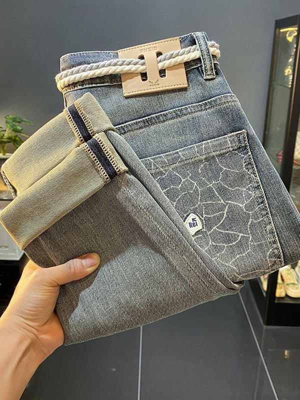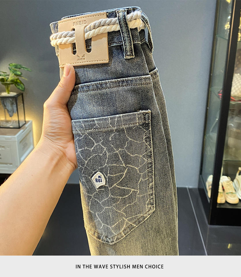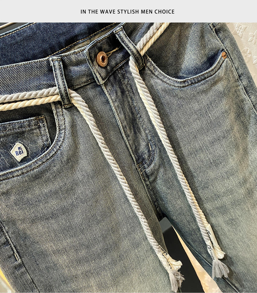 Men's American Heavyweight Denim Jeans Pants Summer 2025 Thin Lightweight Slim Fit Straight Leg High-End Streetwear Trousers
