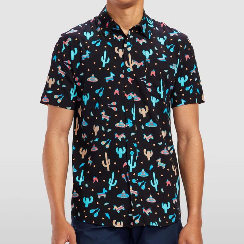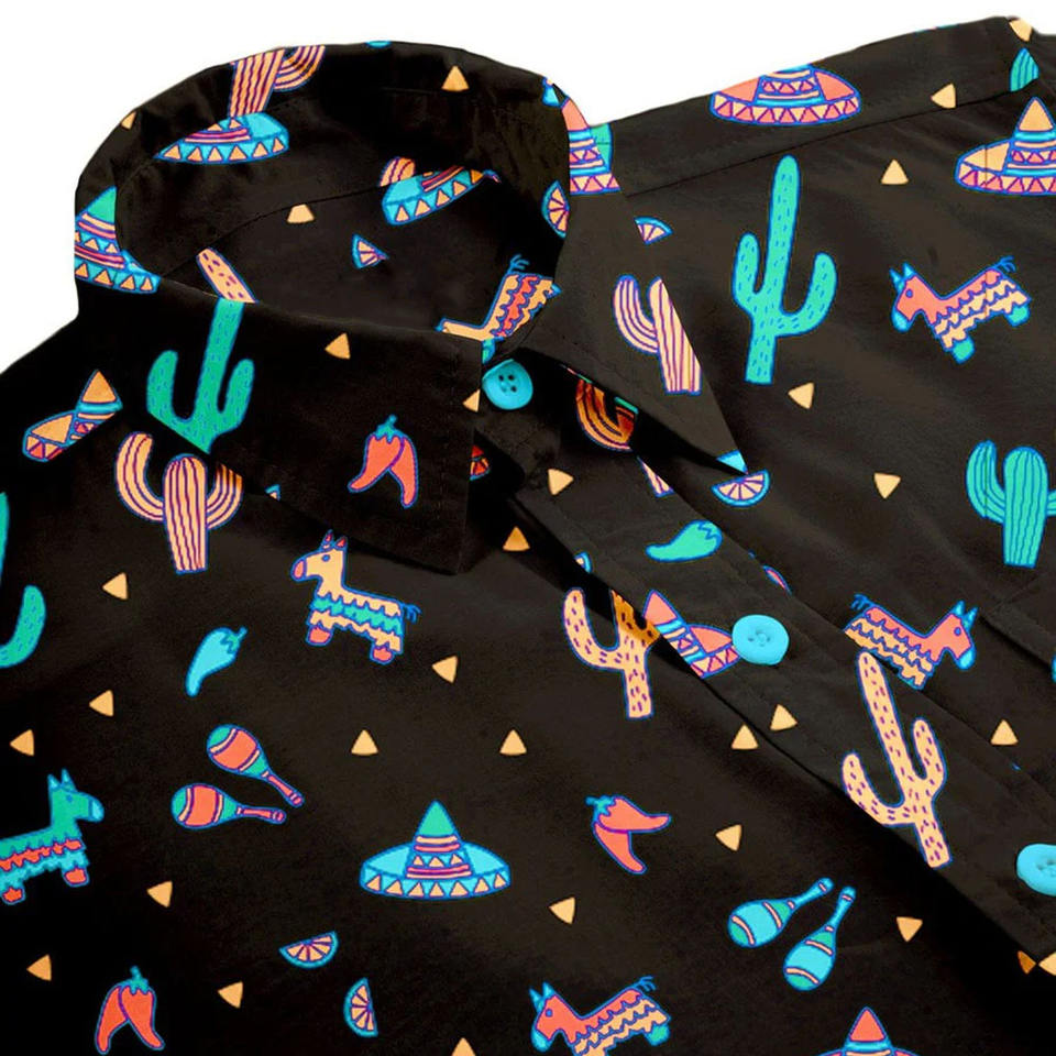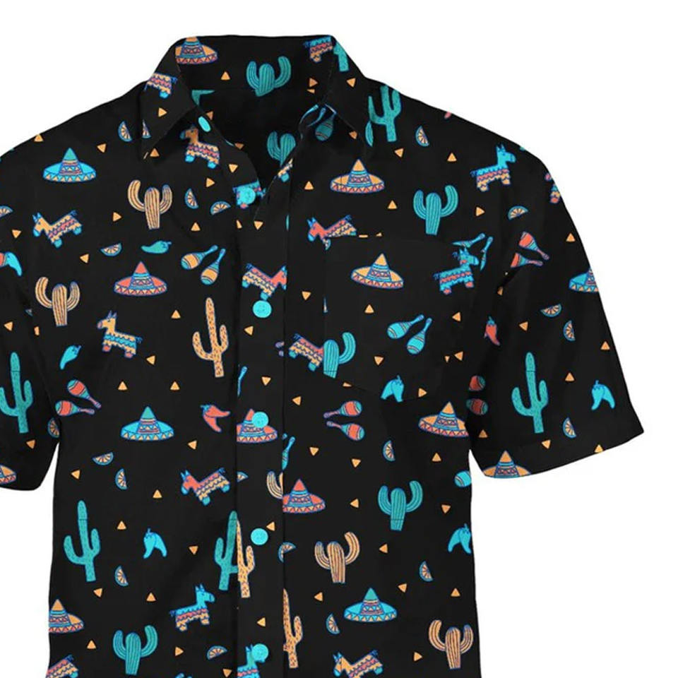 เสื้อเชิ้ตแขนสั้นลำลองลายทรอปิคอลและลายกล้วยสำหรับผู้ชาย ป้องกันริ้วรอย ปรับแต่งได้ เหมาะสำหรับใส่ไปเที่ยวทะเลในฤดูร้อน