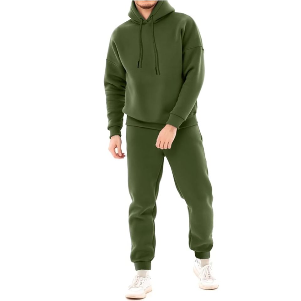 ชุดเสื้อนอกสวมหัวขนแกะระบายอากาศได้ดี2ชิ้นสำหรับผู้ชายเสื้อกันหนาวแบบสวมหัวมีฮู้ดผ้าทอเครื่องแต่งกายจ๊อกกิ้ง