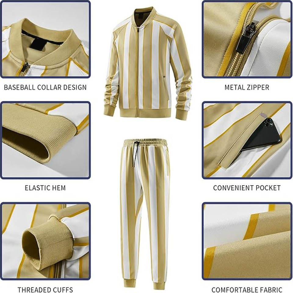 Men's Athletic Full Zip 2-Piece Tracksuits Long Sleeve Sweatsuits for Winter Active Sports Front Logo Position