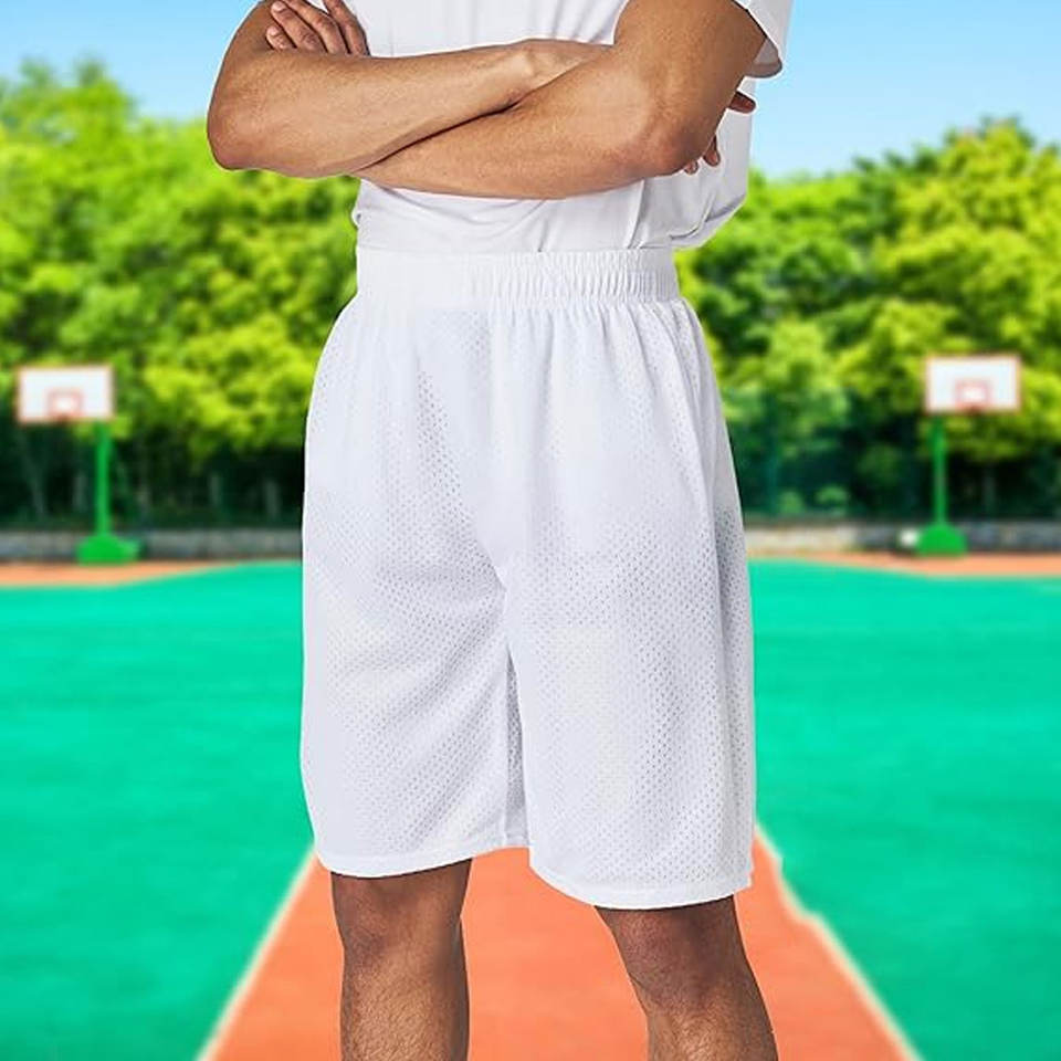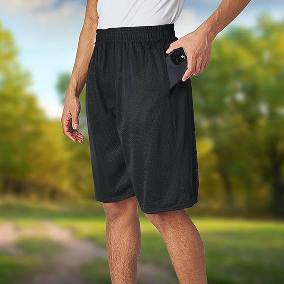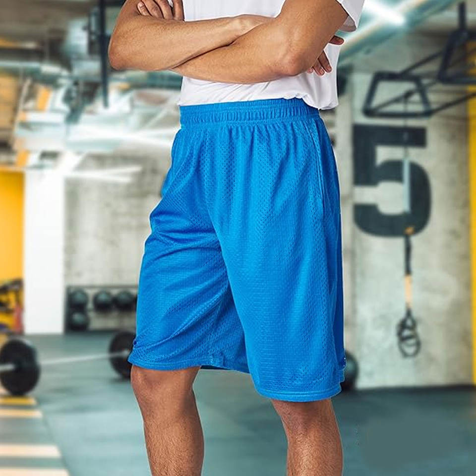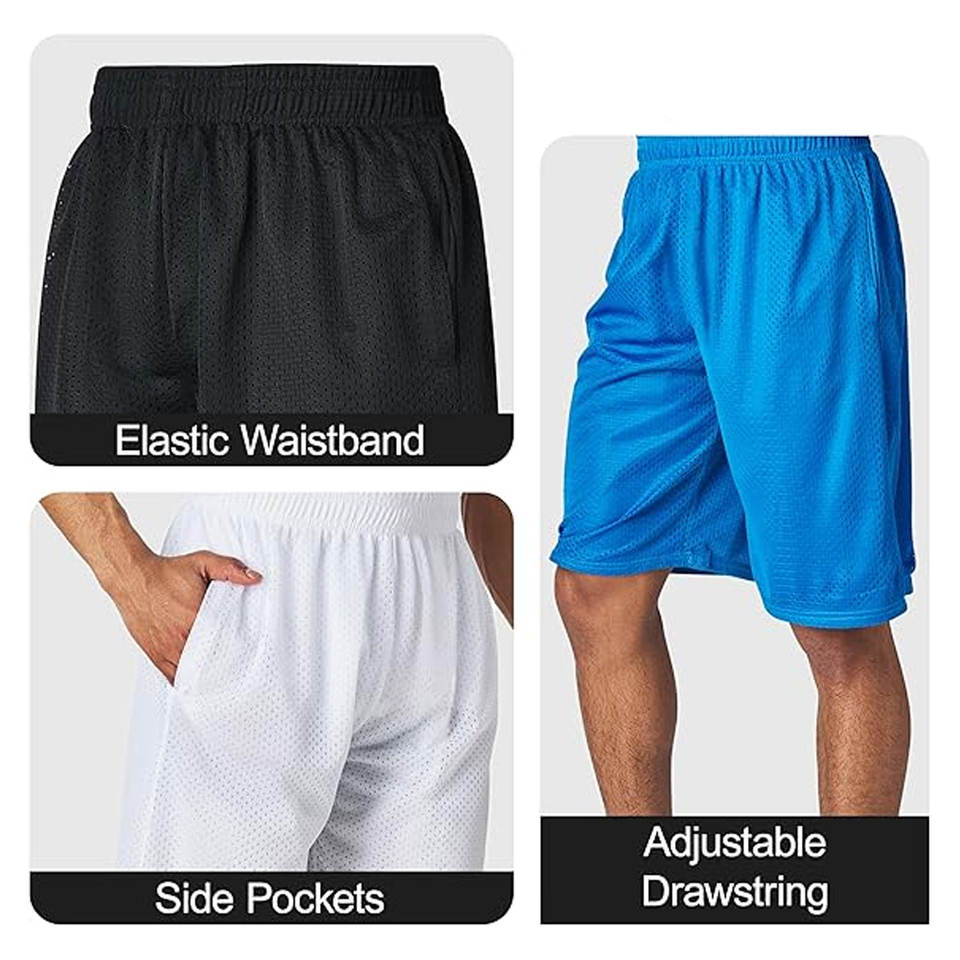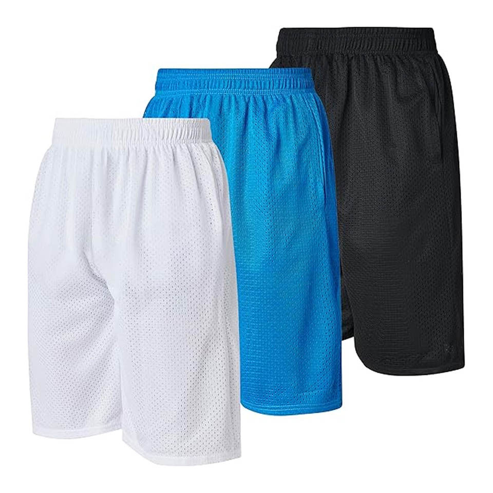 กางเกงกีฬาขาสั้นผู้ชายแบบตาข่าย 3 แพ็ค กางเกงกีฬาบาสเก็ตบอลระบายอากาศได้ดีสำหรับออกกำลังกายในยิมพร้อมกระเป๋าลึก น้ำหนักเบา แห้งเร็ว