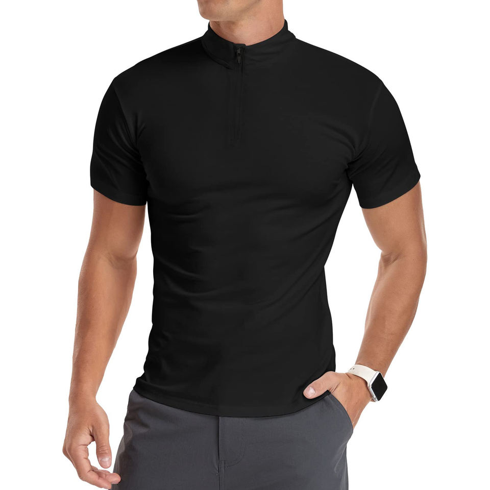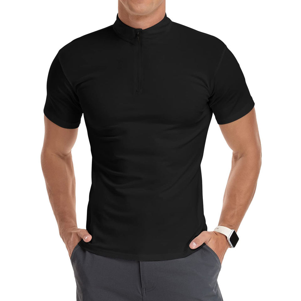 เสื้อยืดแขนสั้นผู้ชายแบบซิป ¼ แห้งเร็ว ลายเรียบ ทันสมัย เหมาะสำหรับกอล์ฟ ฟิตเนส ออกกำลังกายช่วงฤดูร้อน