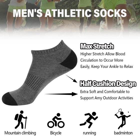 Men's Athletic Summer Breathable Ankle Low Cut Socks 10 Pairs Anti-Slip Silicone for Sports Comfortable and Stylish