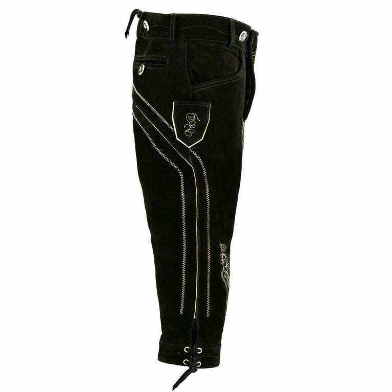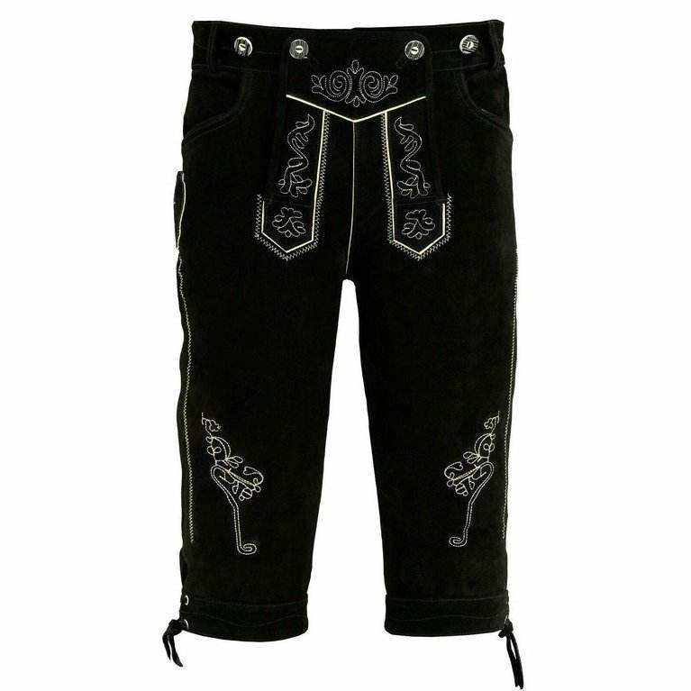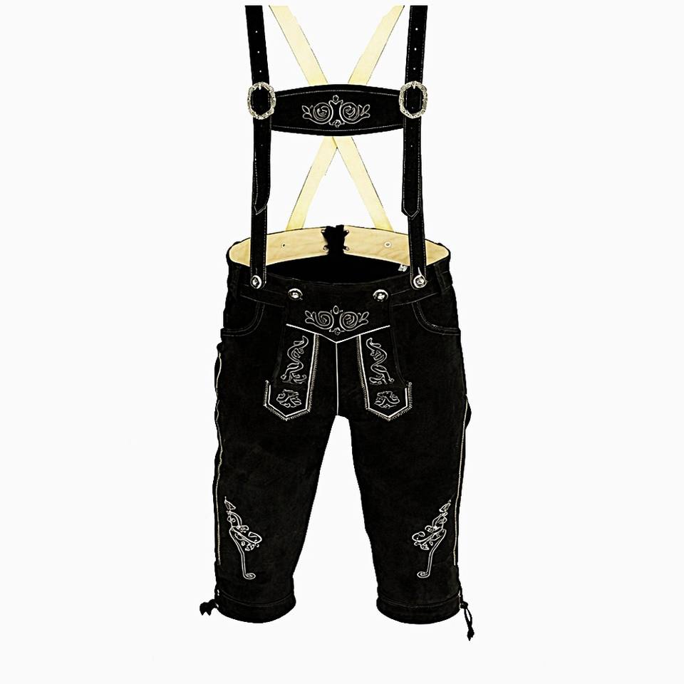 กางเกงหนังแท้สำหรับผู้ชายสีดำสำหรับเทศกาลอ็อกโทเบอร์เฟสต์ หนังบาวาเรียแท้ ขนาด EU 46 ถึง 62