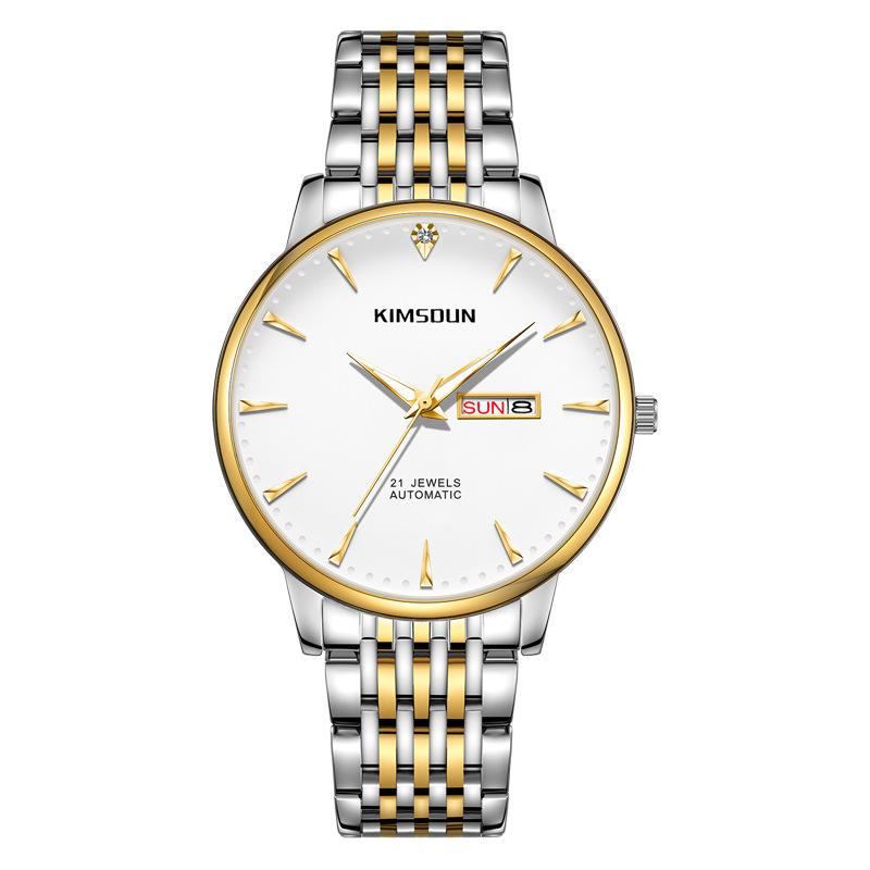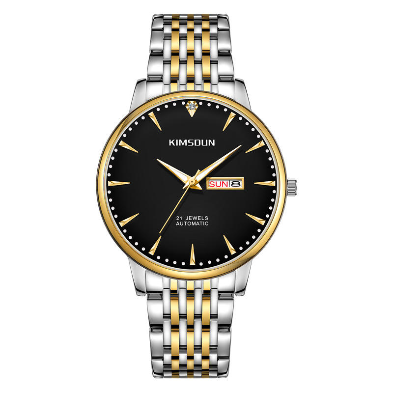 นาฬิกากลไกอัตโนมัติของผู้ชายนาฬิกาข้อมือธุรกิจสแตนเลสสองหน้าปัดเรืองแสงกันน้ำ