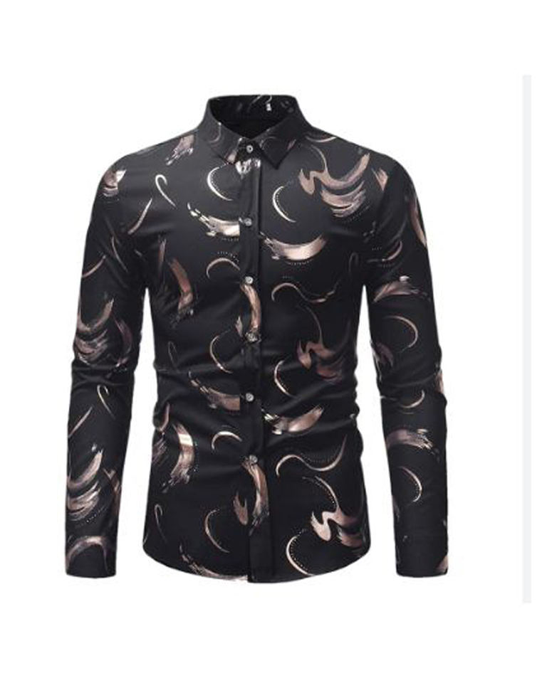 เสื้อเชิ้ตผู้ชายแขนยาวสไตล์ลำลองสำหรับฤดูใบไม้ร่วง ปกเชิ้ตแบบพับได้ ลายเรียบ ผ้าซาติน ป้องกันการเป็นขุย ผลิตจากโพลีเอสเตอร์/คอตตอน