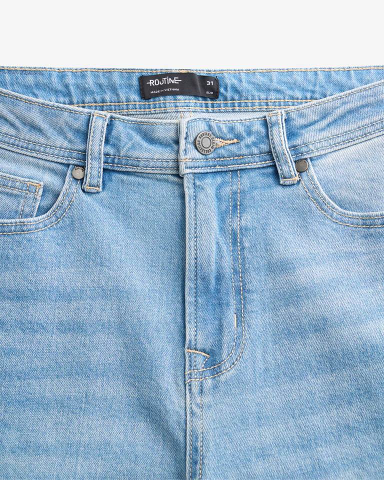กางเกงยีนส์ทรงตรงผู้ชายสไตล์ลำลองสำหรับฤดูใบไม้ร่วง ดีไซน์ 3 มิติ ผ้าฝ้ายซักนุ่ม ระบายอากาศได้ดี เอวกลาง ผลิตโดย Routine Vietnam