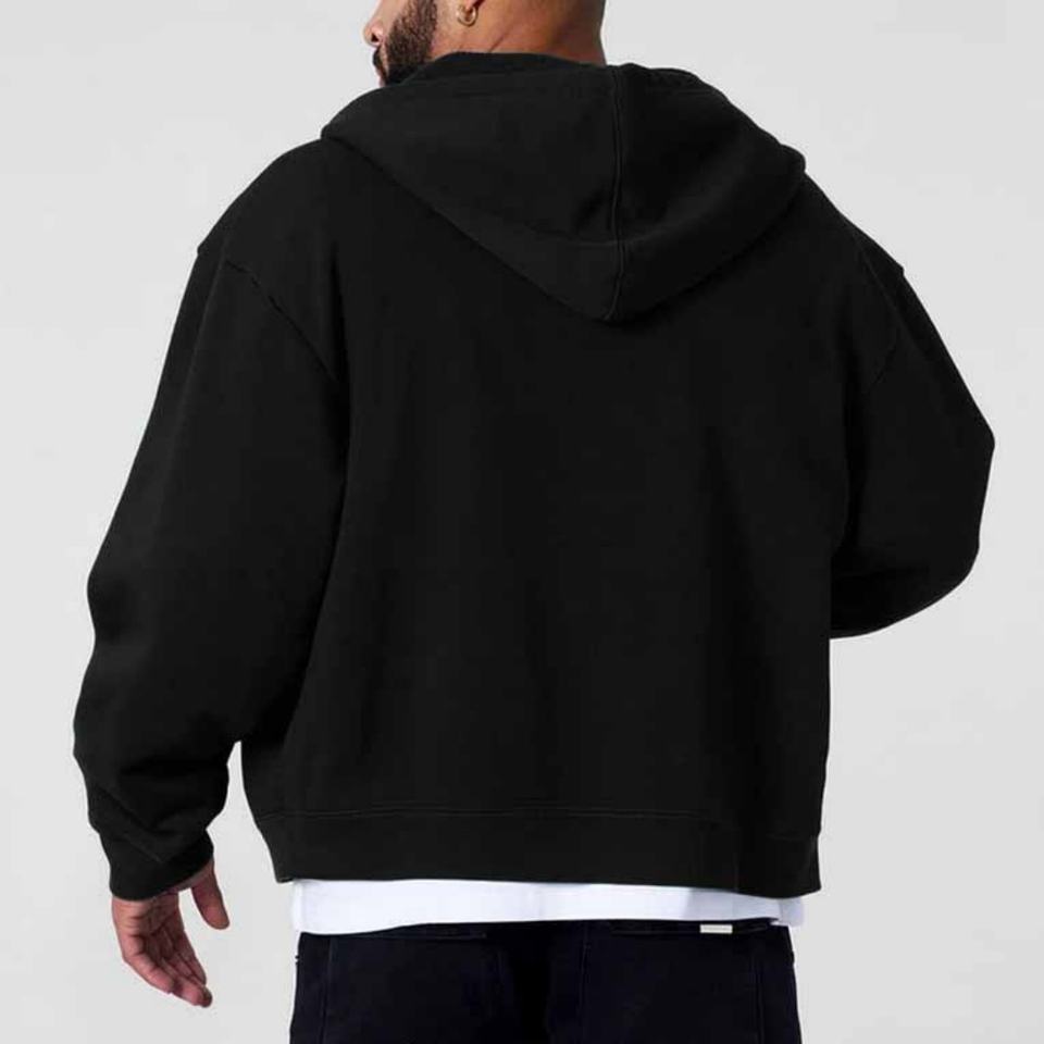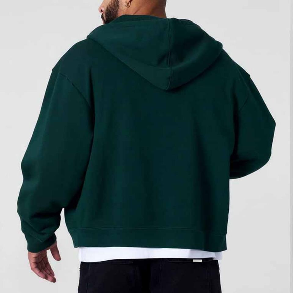เสื้อคาร์ดิแกนผู้ชายแบบสั้นทรงหลวม ผ้ากำมะหยี่ มีฮู้ด ซิปคู่ ดีไซน์เฉพาะสำหรับฤดูใบไม้ร่วง