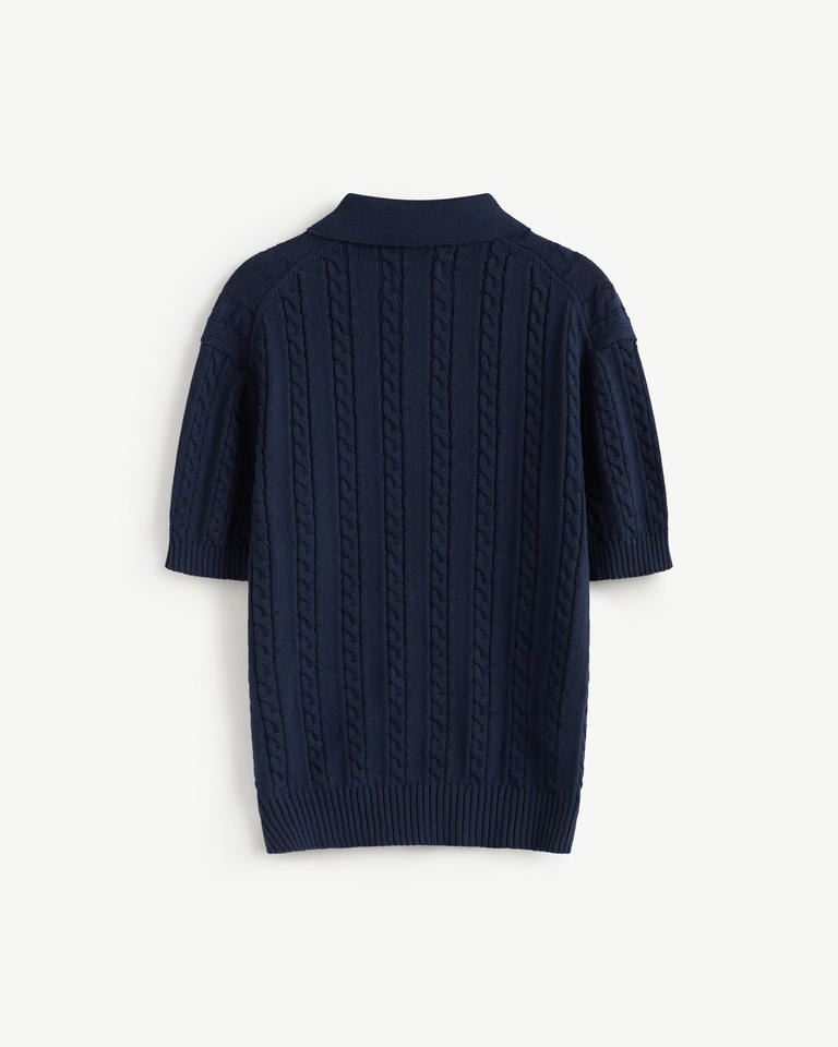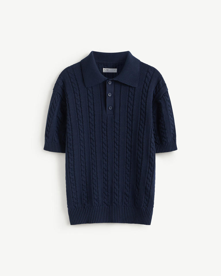 เสื้อเชิ้ตผู้ชายแขนสั้นถักลายเคเบิลคุณภาพสูงสำหรับฤดูใบไม้ร่วง ทรงปกติ สั่งทำโลโก้ส่วนตัว ผ้าหนา ผลิตในเวียดนาม