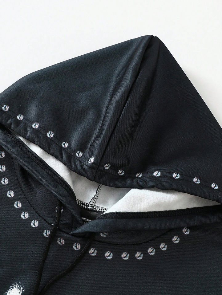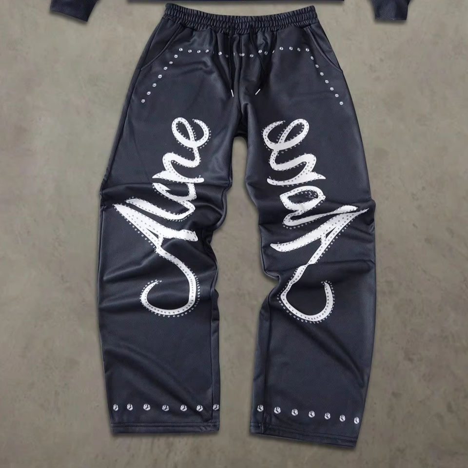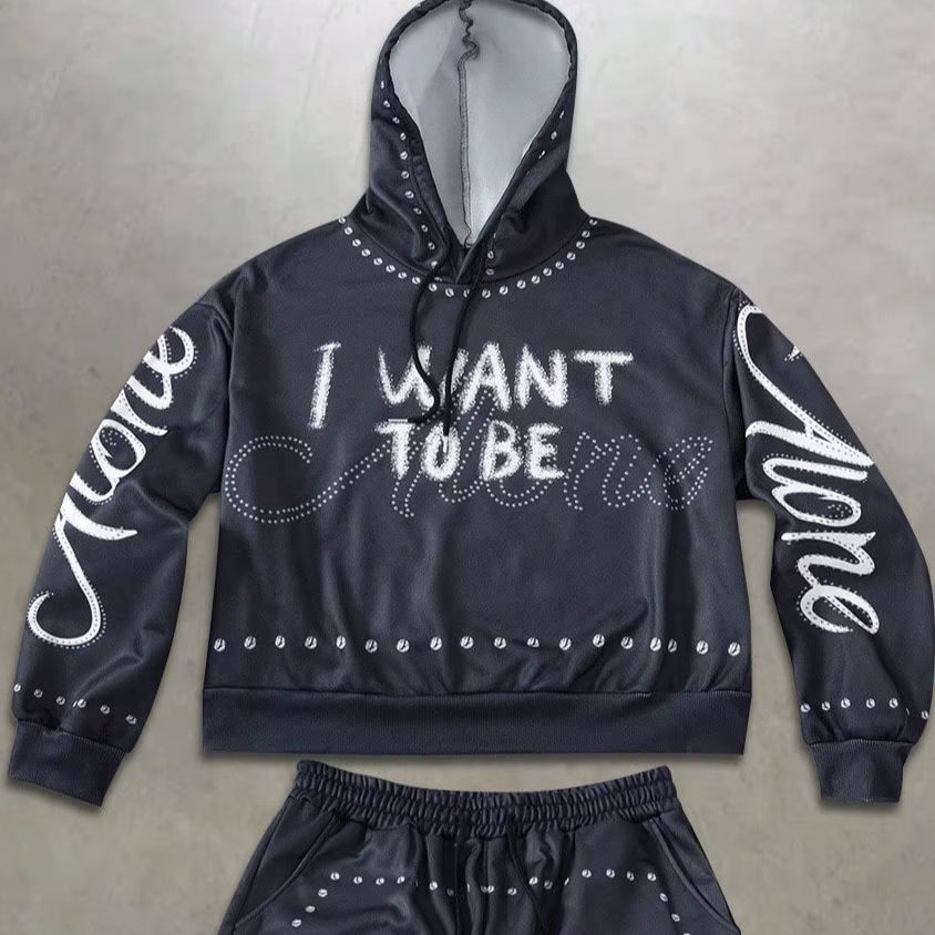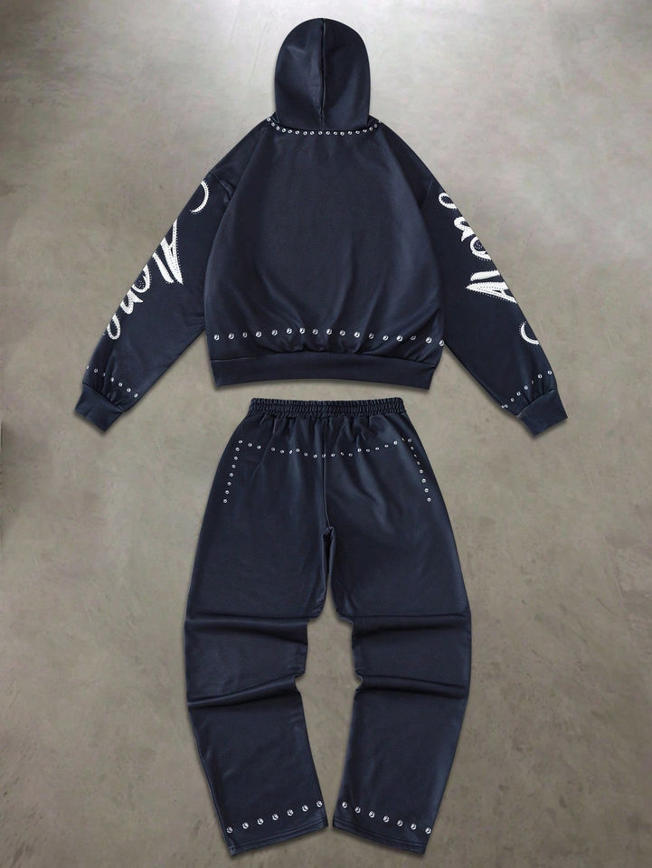 ชุดลำลองผู้ชาย เสื้อฮู้ดและกางเกงขายาวลายตัวอักษรสำหรับฤดูใบไม้ร่วง สีขาว ชุดเซ็ต 2 ชิ้น