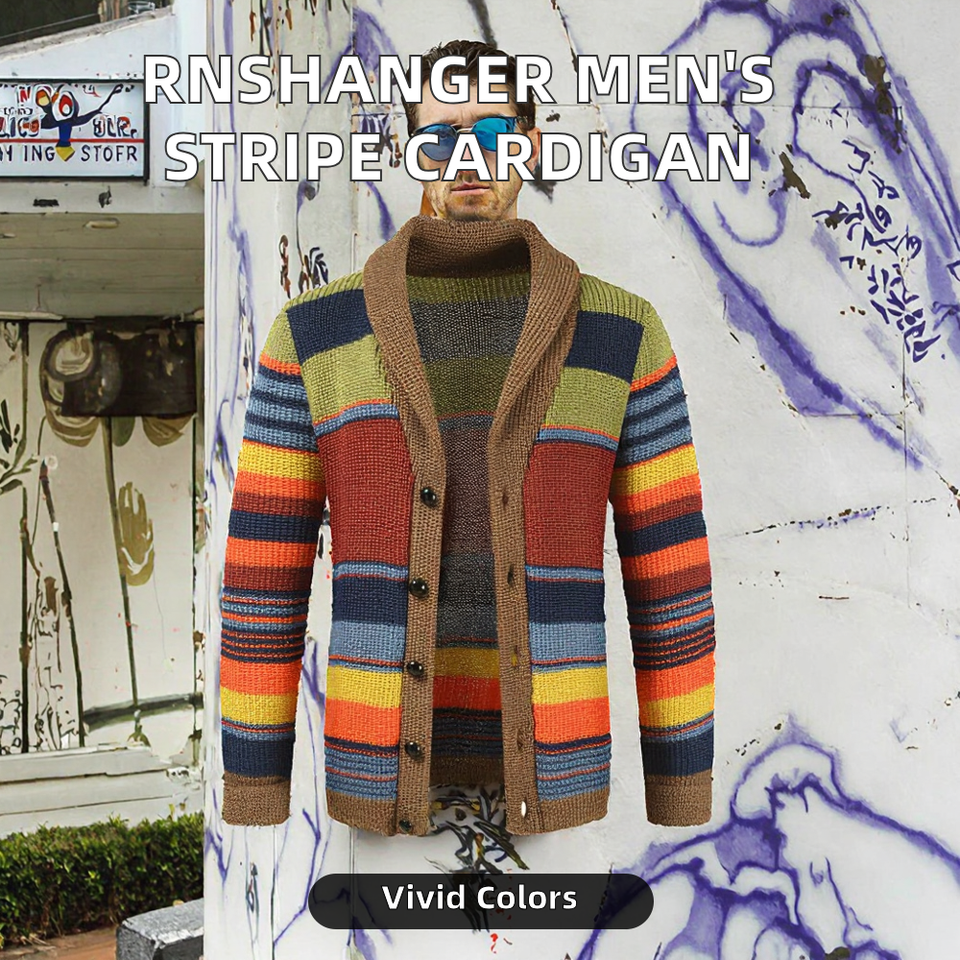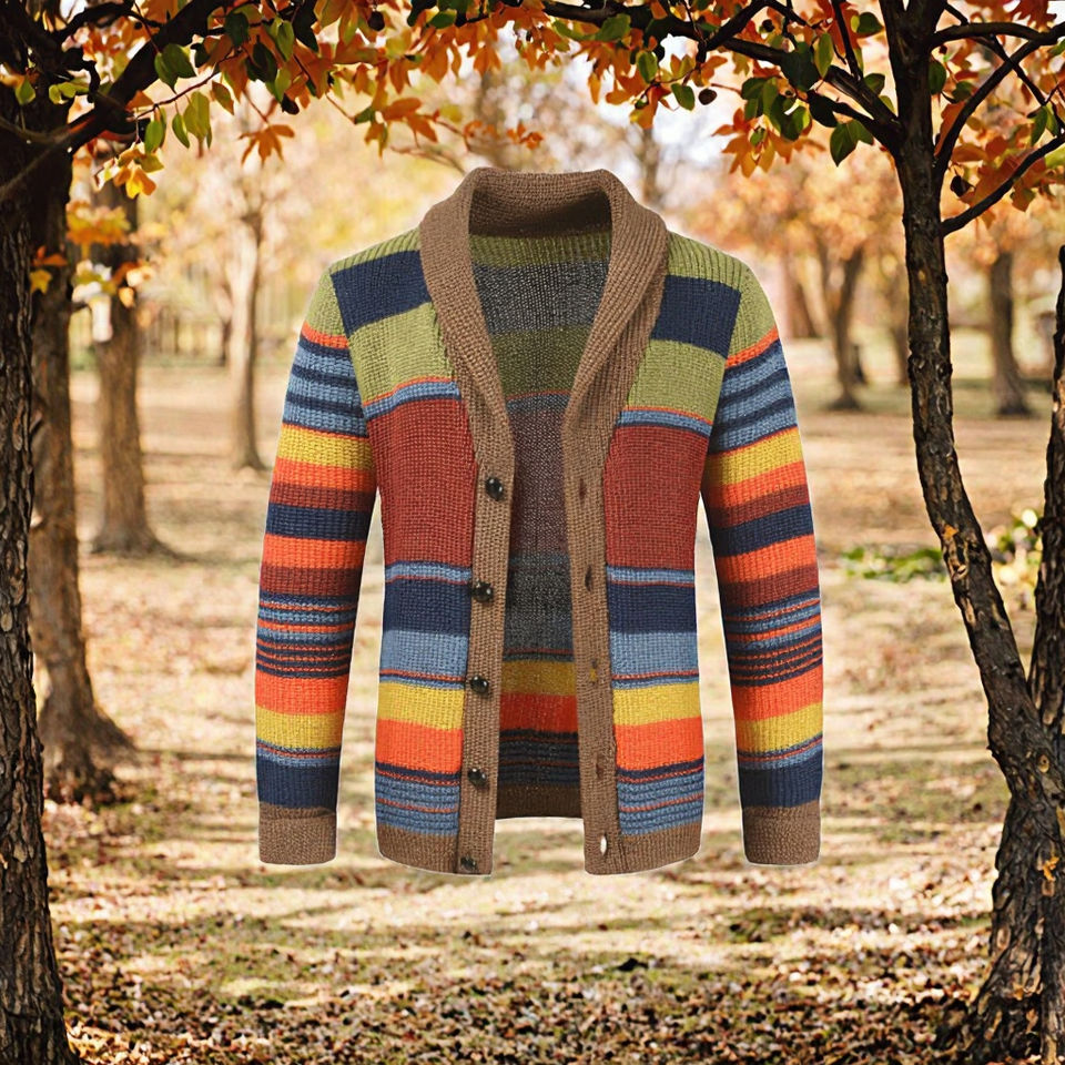 เสื้อคาร์ดิแกนผู้ชายลายทางหลวมๆ สไตล์ฤดูใบไม้ร่วง สีสันสดใส ทรงโอเวอร์ไซส์ เทคนิคการถักแบบเรียบง่าย เสื้อโค้ทถักนิตติ้ง แฟชั่นอินเทรนด์