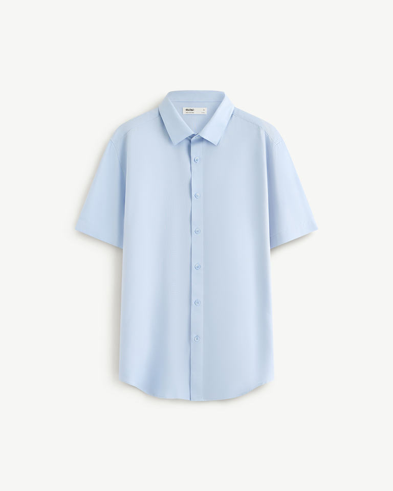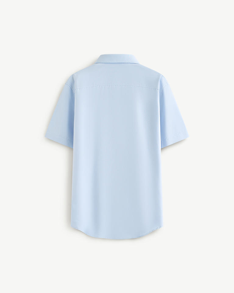 เสื้อเชิ้ตผู้ชายแขนสั้นทรงเข้ารูปสีพื้นสไตล์ลำลองสำหรับธุรกิจ ระบายอากาศได้ดี ผลิตจากผ้าถักโพลีเอสเตอร์ เหมาะสำหรับฤดูใบไม้ร่วง สามารถสั่งตัดได้ตามต้องการ