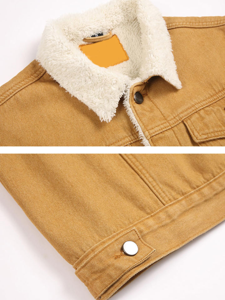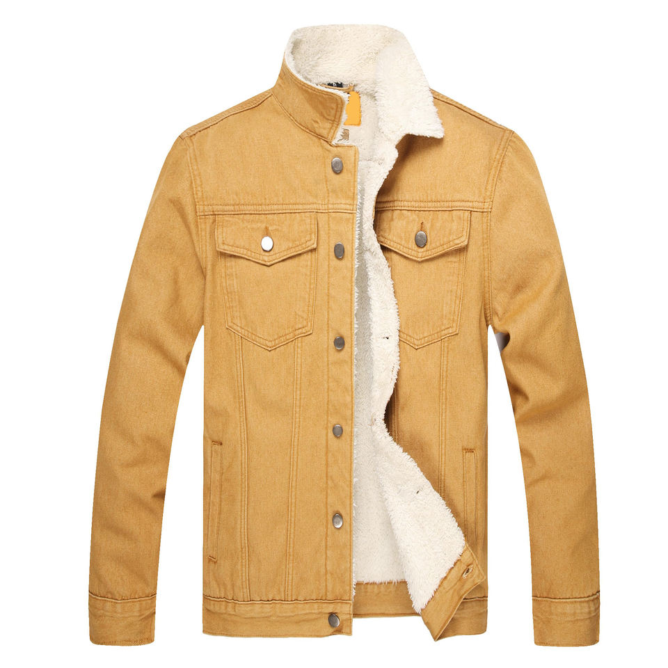 เสื้อแจ็คเก็ตยีนส์ผู้ชายสไตล์วินเทจสำหรับฤดูใบไม้ร่วง คอตั้งเคลือบสีน้ำเงินฟอก แต่งขอบคอแบบขาดๆ สไตล์สตรีทแวร์ลำลอง มีโลโก้ด้านหน้า