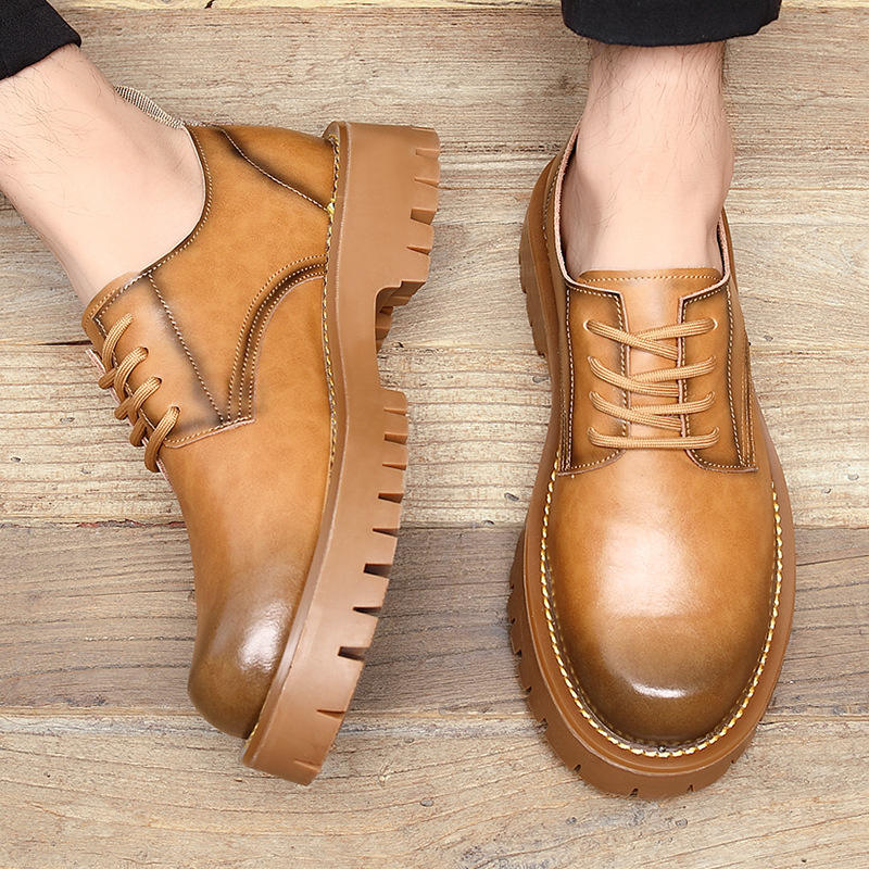 รองเท้าทำงานลำลองผู้ชายสำหรับฤดูใบไม้ร่วง/ฤดูหนาว แบบหุ้มส้นต่ำ พื้นหนา กันลื่น กันน้ำ หนังแท้ เหมาะสำหรับใส่ทำงานในออฟฟิศ ทันสมัย
