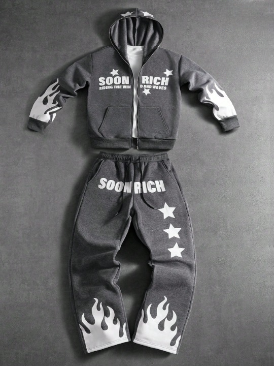 ชุดเสื้อฮู้ดซิปแฟชั่นสตรีทแวร์สำหรับผู้ชาย ฤดูใบไม้ร่วง/ฤดูหนาว