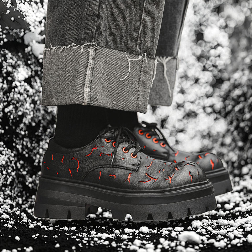 รองเท้าหนังหุ้มข้อสำหรับผู้ชายฤดูใบไม้ร่วงฤดูหนาวดีไซน์หนังวัวส้นเตี้ยหัวแหลมรองเท้าลำลองกลางแจ้งพื้นรองเท้า PU พื้นรองเท้าหนาสไตล์แฟชั่นใหม่