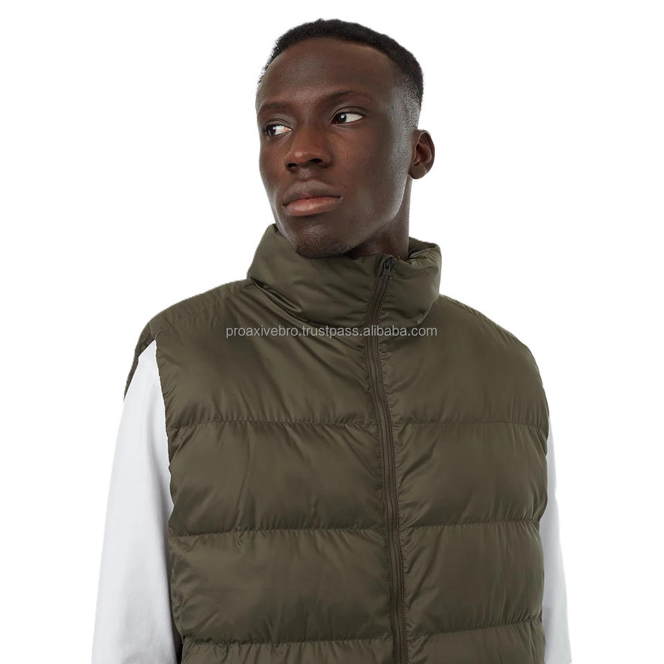 เสื้อกั๊กพัฟเฟอร์ผู้ชาย สไตล์ไฮสตรีท สำหรับฤดูใบไม้ร่วง/ฤดูหนาว ผิวด้าน/เงา กันลม เป็นมิตรกับสิ่งแวดล้อม กันน้ำ คอตั้ง ซิป ไม่มีแขน
