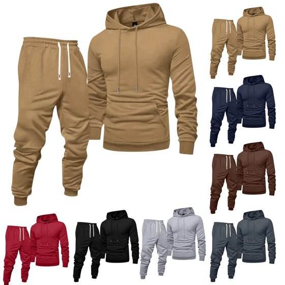 ชุดวอร์มสองชิ้นสำหรับผู้ชายชุดกีฬาลำลองกลางแจ้งแฟชั่นสีพื้นสำหรับฤดูใบไม้ร่วงและฤดูหนาว
