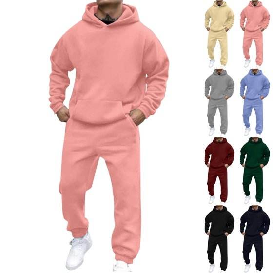 ชุดวอร์มสองชิ้นสำหรับผู้ชายชุดกีฬาลำลองกลางแจ้งแฟชั่นสีพื้นสำหรับฤดูใบไม้ร่วงและฤดูหนาว