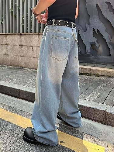 กางเกงผ้ายีนส์ทรงตรงฮิปฮอปทรงหลวมระบายอากาศได้แนวสตรีทผ้าเนื้อละเอียดน้ำหนักเบาสวมใส่สบาย