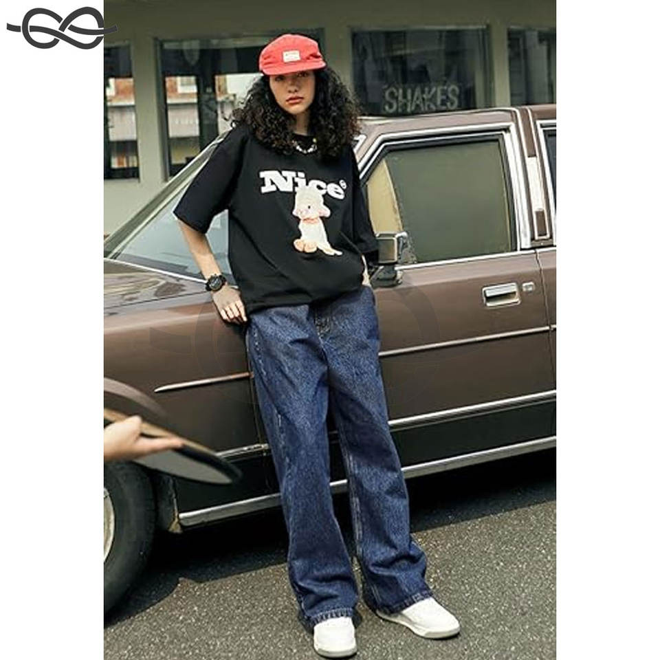 กางเกงยีนส์ขาบานสำหรับผู้ชายและผู้หญิงสไตล์ฮิปฮอป, กางเกงยีนส์ลำลองขากว้างทรงหลวม
