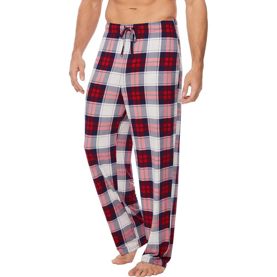 กางเกงนอนผ้าฝ้ายลายสก็อตสำหรับผู้ชาย เนื้อผ้านุ่ม สวมใส่สบาย เหมาะสำหรับใส่ที่บ้าน มีเชือกผูกเอว