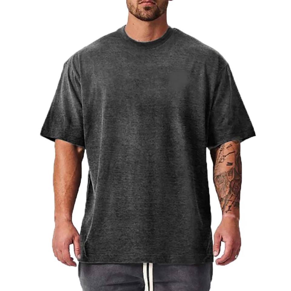 เสื้อยืดผ้าคอตตอนเปิดไหล่2023ผู้ชายทรงโอเวอร์ไซส์เข้ารูปมีชายเสื้อโค้งสีกำหนดเองคุณภาพสูง100