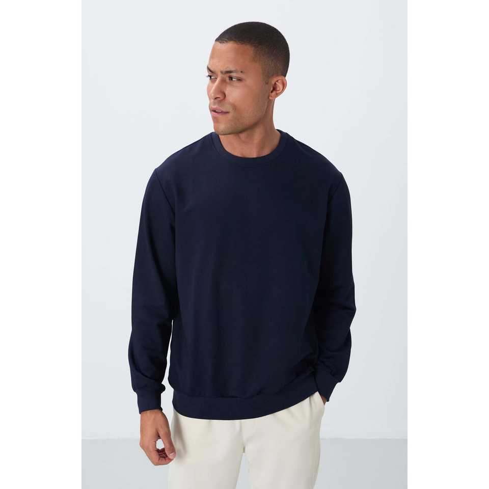 เสื้อสเวตเชิ้ตผู้ชายแบบพื้นฐาน ผ้าฝ้าย 100% สีคราม เนื้อผ้าเฟรนช์เทอร์รี่เนื้อนุ่ม ทรงมาตรฐาน รุ่น 88363