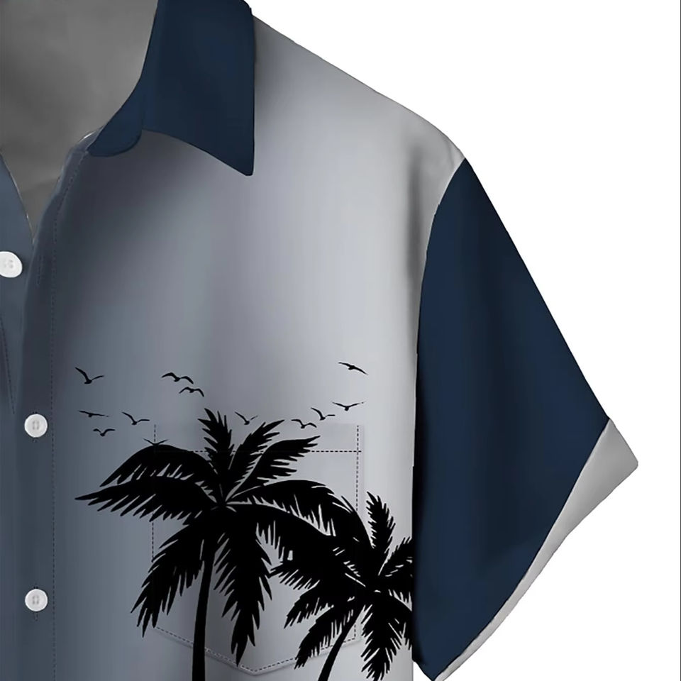เสื้อฮาวายผู้ชาย ผ้าซาติน ลำลอง ใส่สบาย แห้งเร็ว พิมพ์ลาย แขนสั้น สำหรับผู้ใหญ่