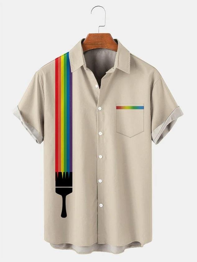 เสื้อเชิ้ตชายลำลองพิมพ์ลาย 3 มิติ แขนสั้น ติดกระดุม ทรงหลวม แห้งเร็ว สไตล์สตรีทแฟชั่น ดีไซน์ไม่มีกระเป๋า