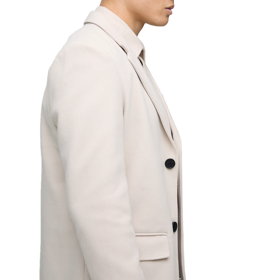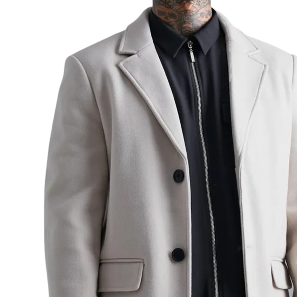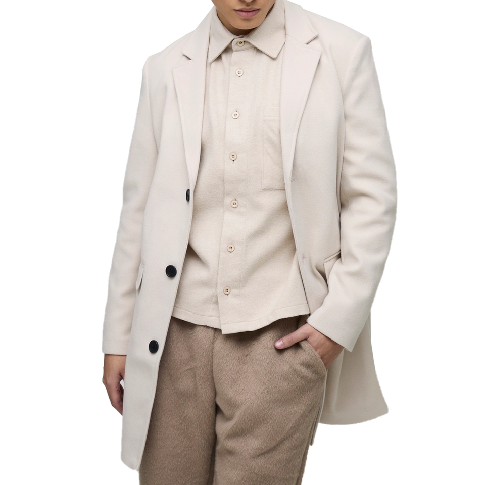 Men's Beige Overcoat Double Breasted 100% Wool Turn-down Collar Knitted Eco-Friendly Breathable Classic Winter Long Coat Button
