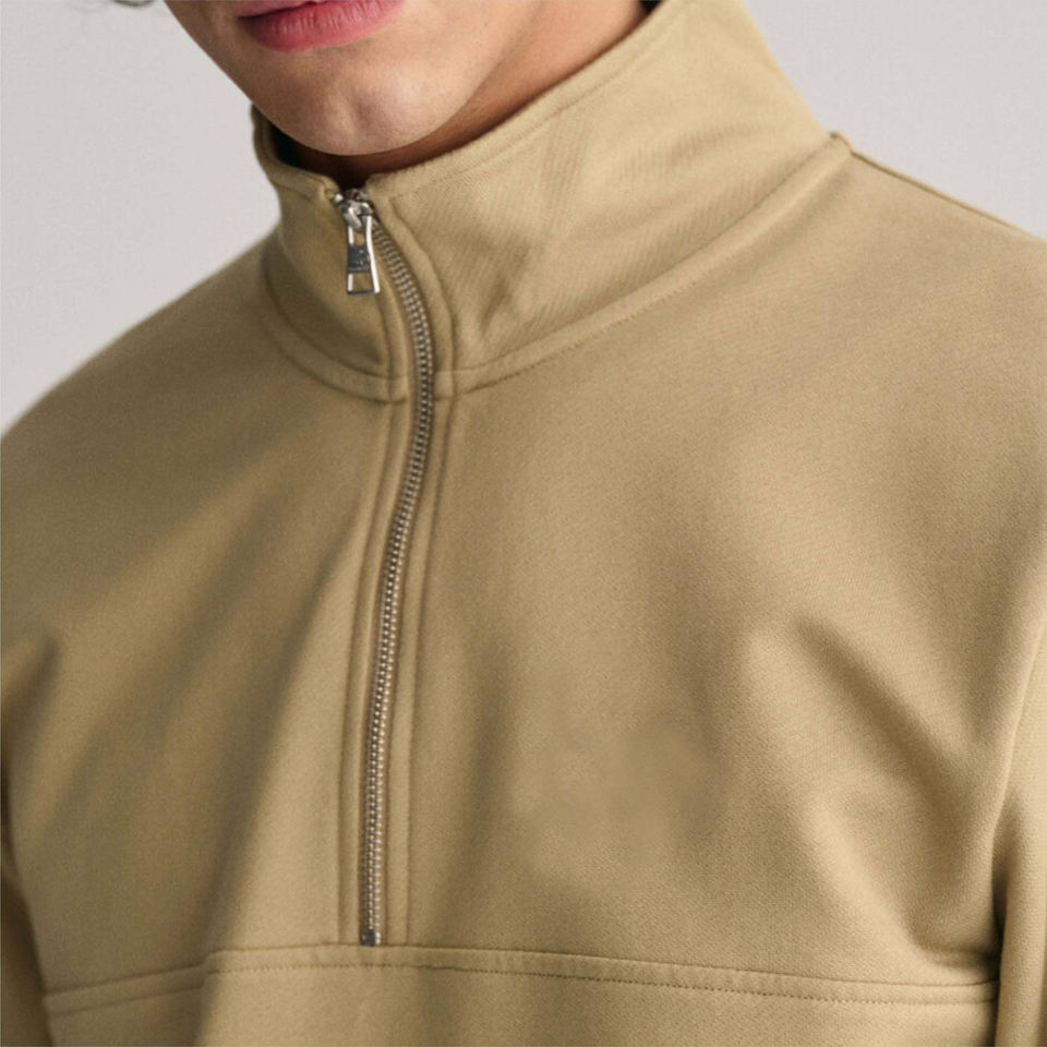 เสื้อสเวตเตอร์สวมหัวมีซิปสีเบจแขนยาวลำลองนุ่มสบายน้ำหนักเบาปักสีพื้นสำหรับฤดูหนาว