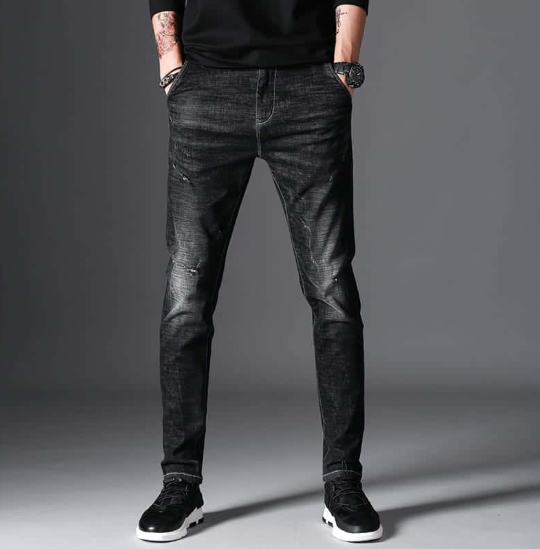 กางเกงผ้ายีนส์เอวสูงสำหรับผู้ชายทรงตรงเข้ารูปดีไซน์ทันสมัยล่าสุด