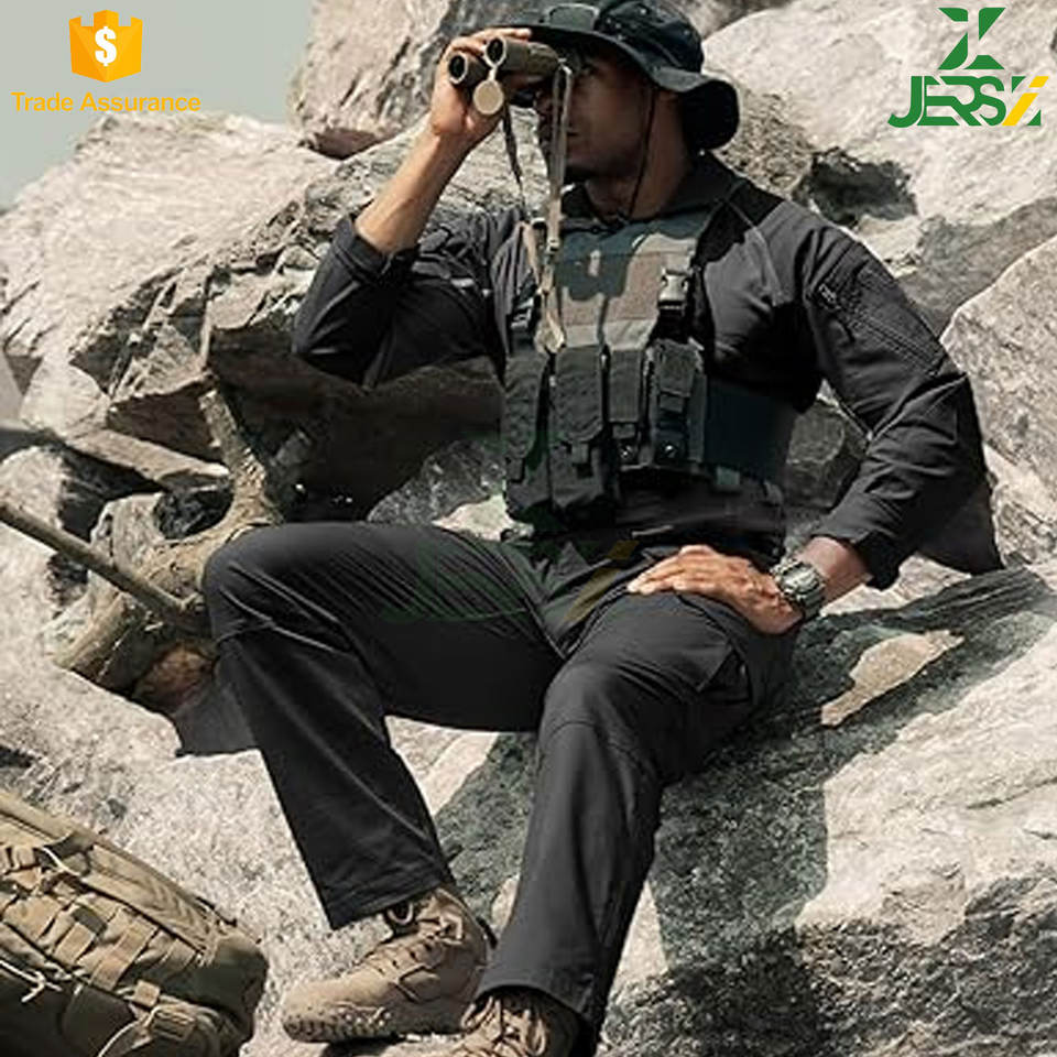 กางเกงยุทธวิธีผู้ชายขายดีที่สุด ผ้าฝ้าย 100% ยืดหยุ่น กันน้ำ น้ำหนักเบา เหมาะสำหรับเดินป่า ทำงาน ทรงคาร์โก้ ปิดด้วยยางยืด