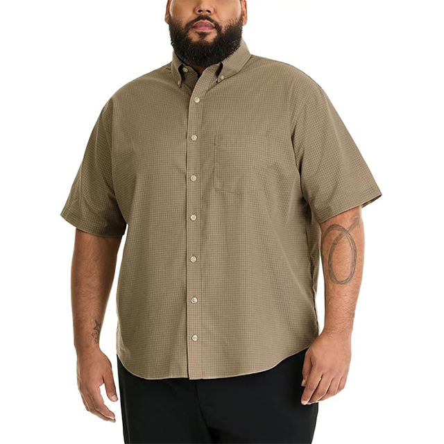 Men's Big and Tall Wrinkle Free Short Sleeve Button Down Check Shirt