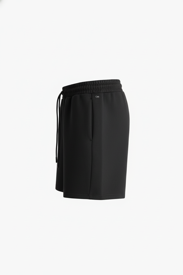 กางเกงขาสั้นสีดำสำหรับผู้ชายกางเกงกีฬาขาสั้นเอวยางยืดมีกระเป๋า