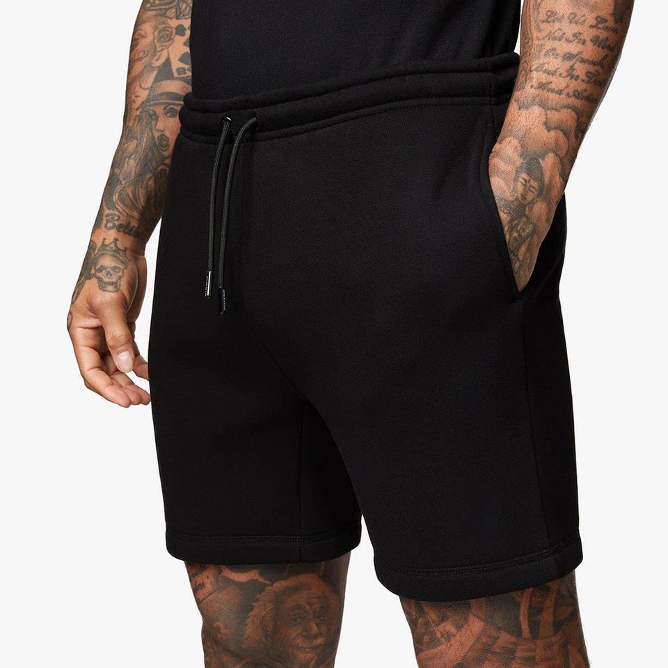 กางเกงขาสั้นลำลองสีดำสำหรับผู้ชาย ระบายอากาศได้ดี เหมาะสำหรับฤดูร้อน สไตล์สตรีทแวร์ มีเชือกผูก ลายเรียบ