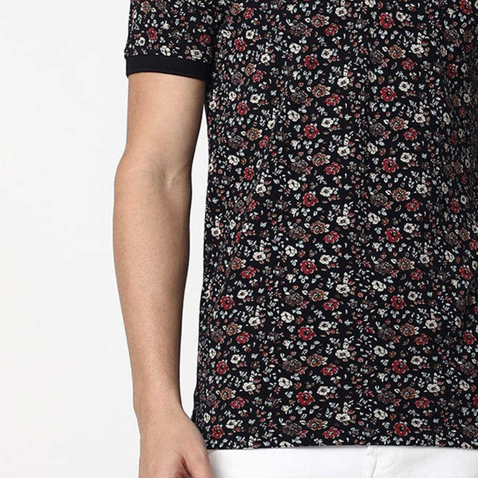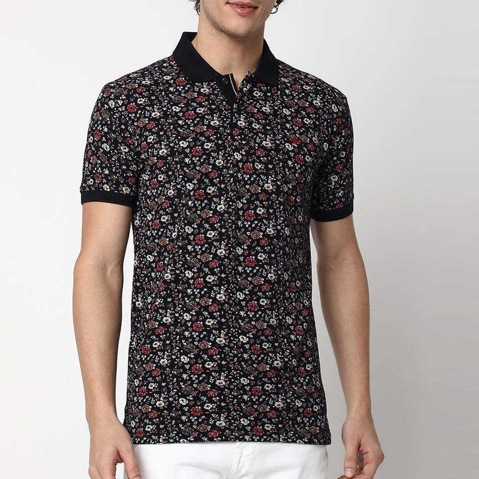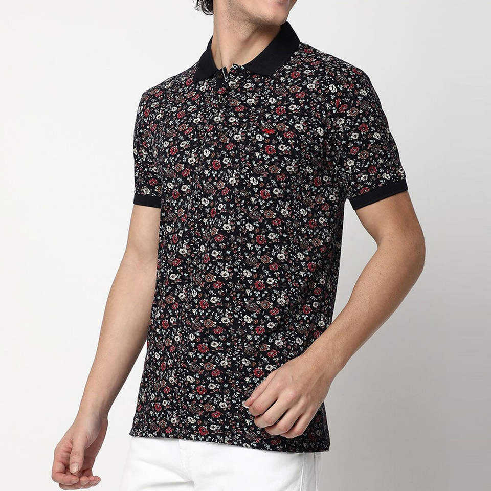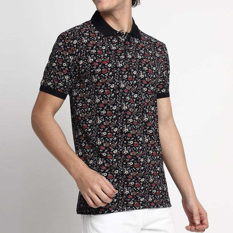 เสื้อโปโลพิมพ์ลายดอกไม้สีดำสำหรับผู้ชาย รุ่น 2026 สไตล์สมาร์ทแคชชวล แขนสั้น ทรงพอดีตัว พรีเมียม สีแดงและสีขาว เสื้อผ้าฤดูร้อน HD