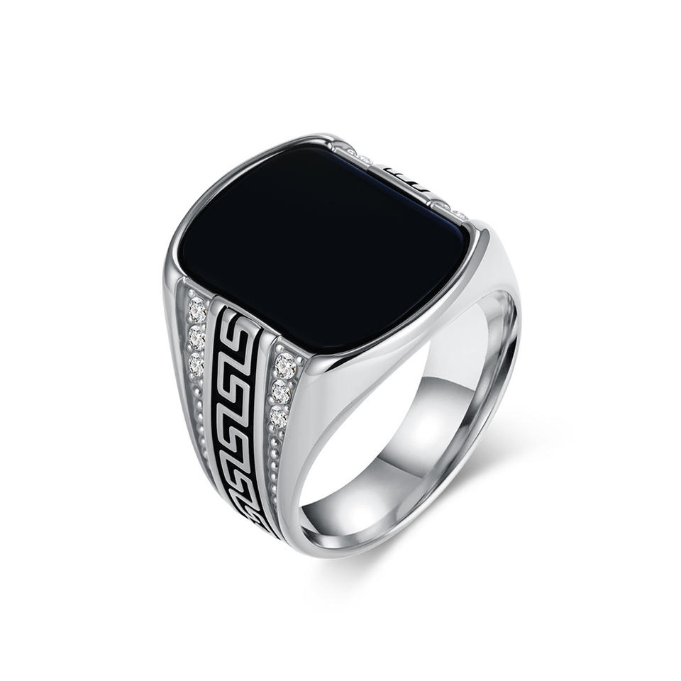 แหวนเหล็กไทเทเนียมสีทองสำหรับผู้ชาย ลายเรขาคณิต เครื่องประดับแฟชั่น ของขวัญ รุ่น K-R1077