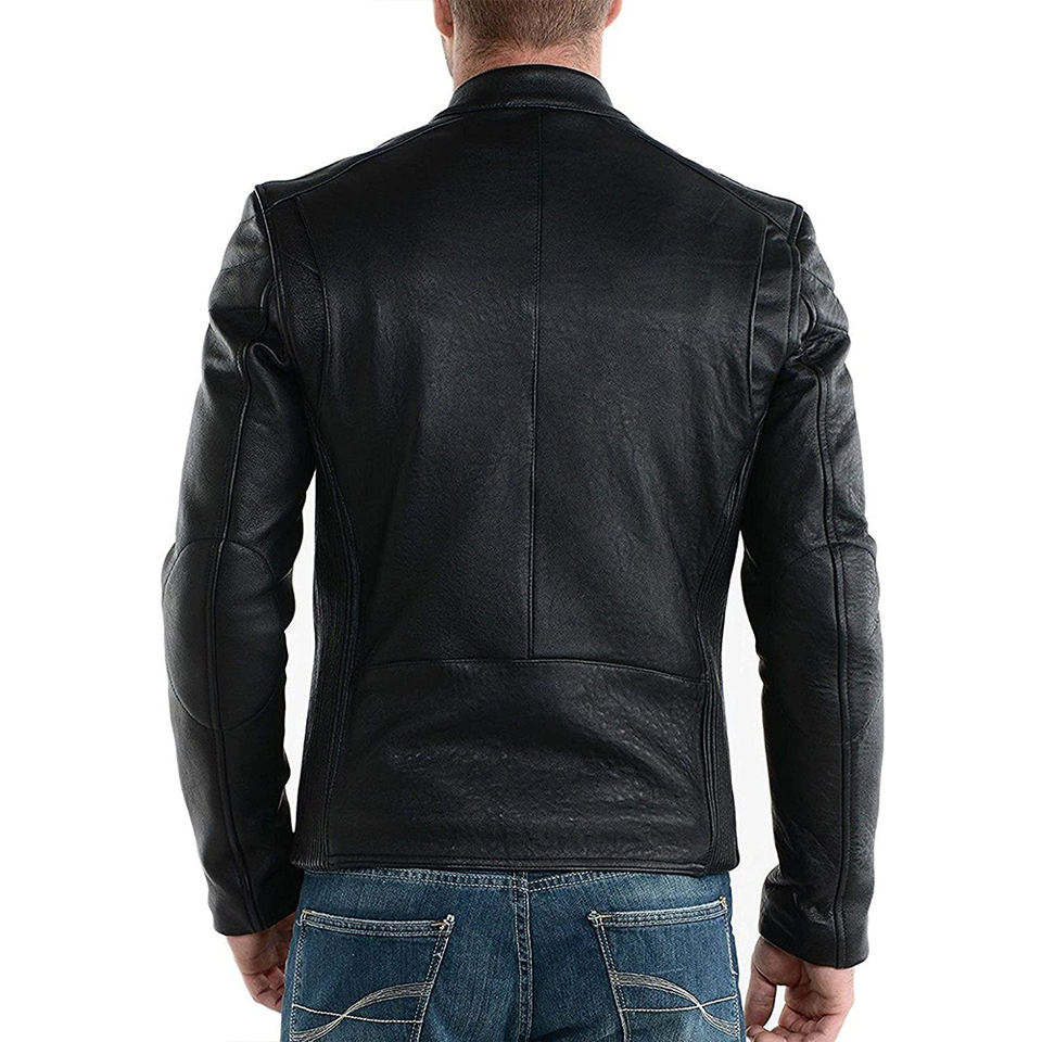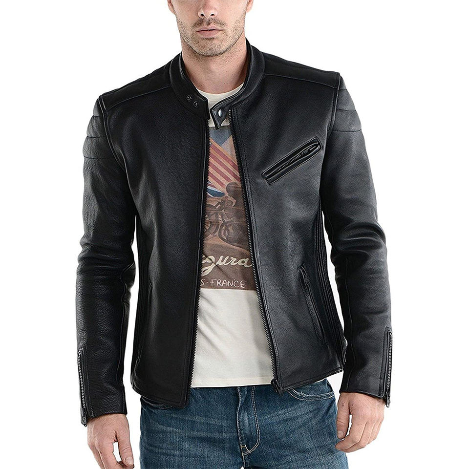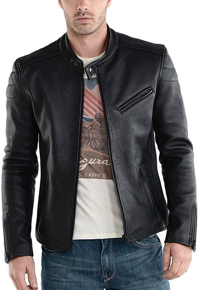 เสื้อแจ็คเก็ตหนังสีดำของผู้ชายเสื้อแจ็คเก็ตหนังแท้เสื้อโค้ทสำหรับรถยนต์