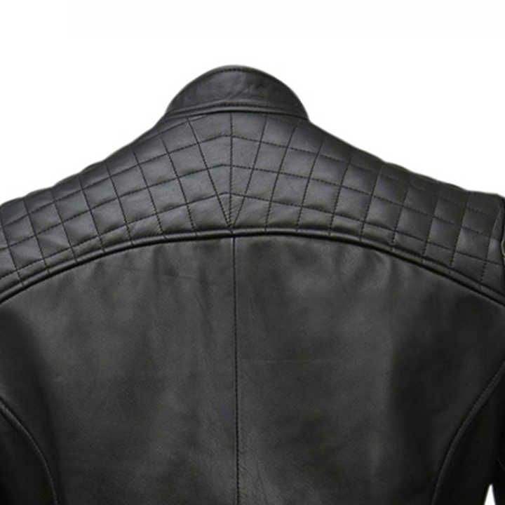เสื้อแจ็กเก็ตขี่มอเตอร์ไซค์หนังสีดำสำหรับผู้ชาย, เสื้อโค้ทสำหรับนักปั่นจักรยานปกตั้งสไตล์คาเฟ่นักแข่งรถ
