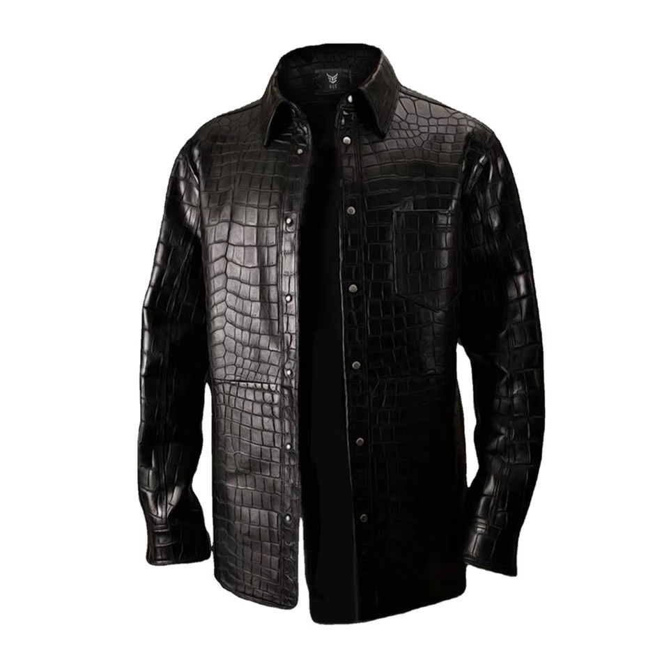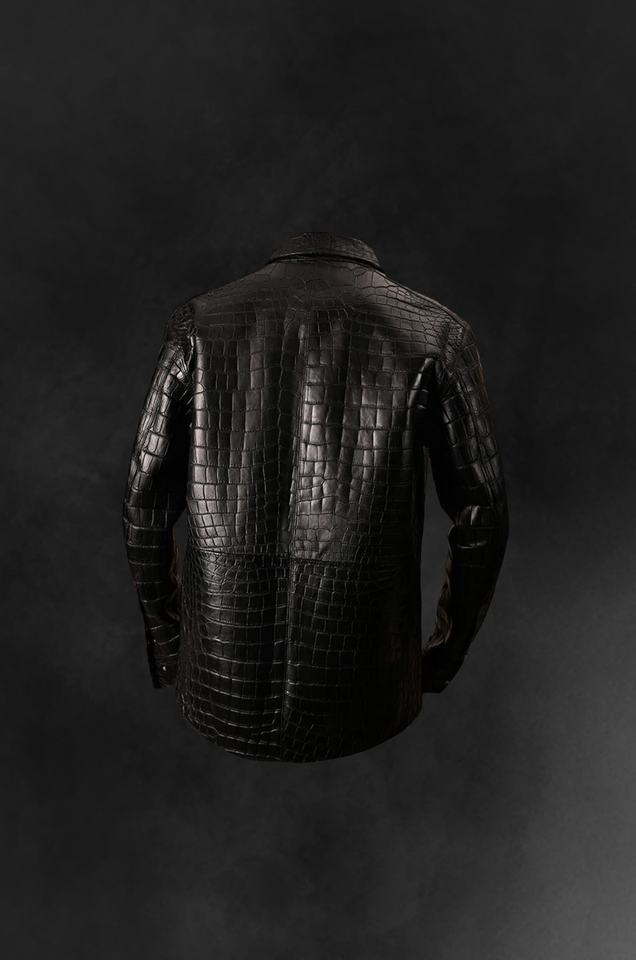 เสื้อหนังจระเข้สีดำสำหรับผู้ชาย, เสื้อแจ็คเก็ตหนังแท้ลายนูนจระเข้ออกแบบได้ตามต้องการ