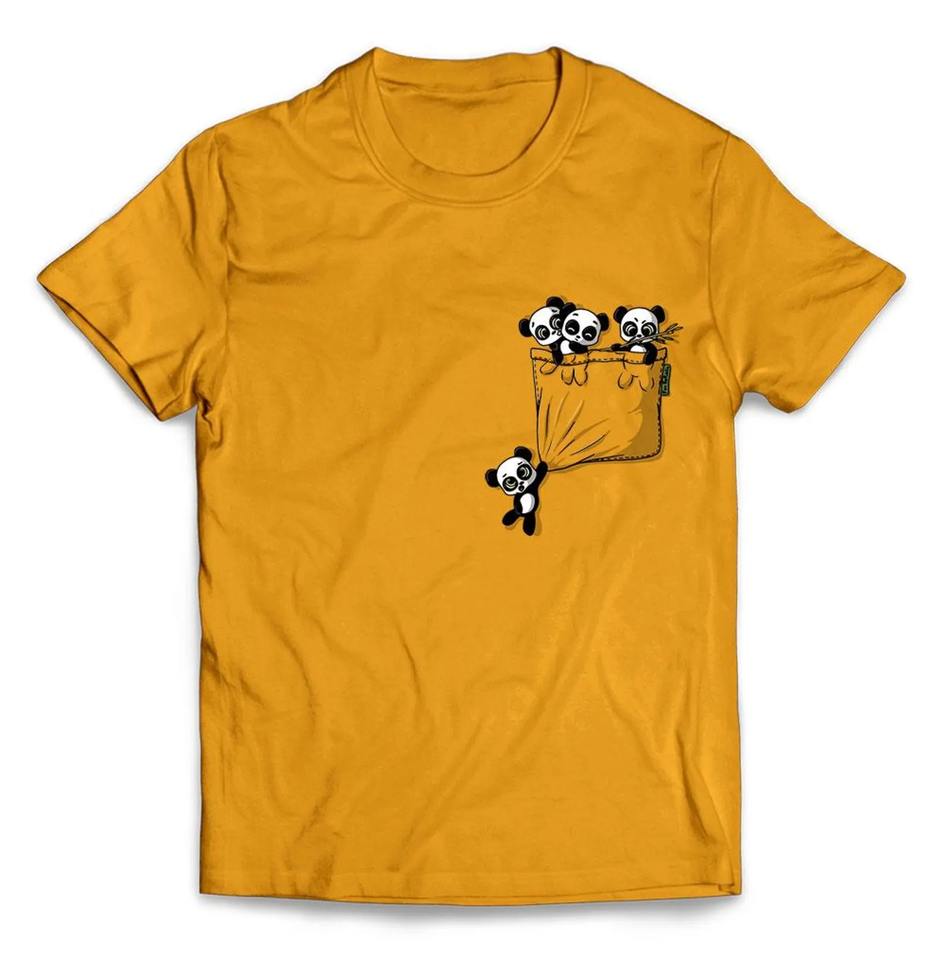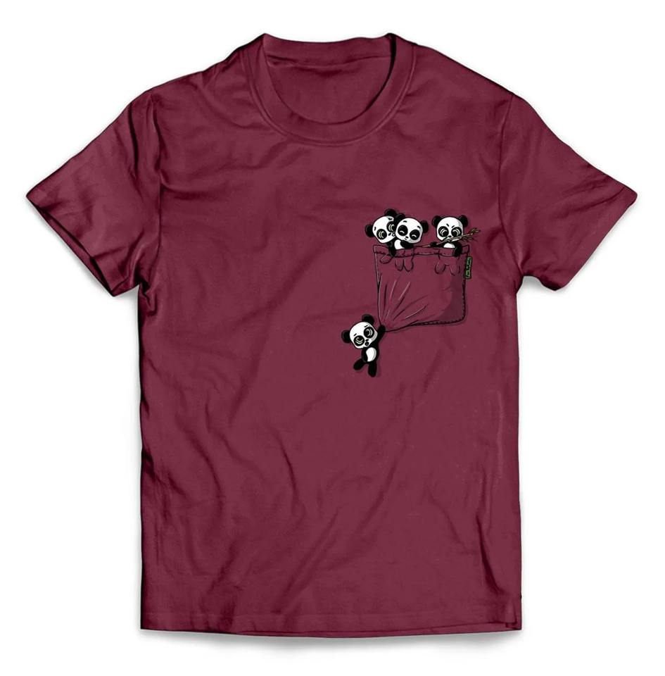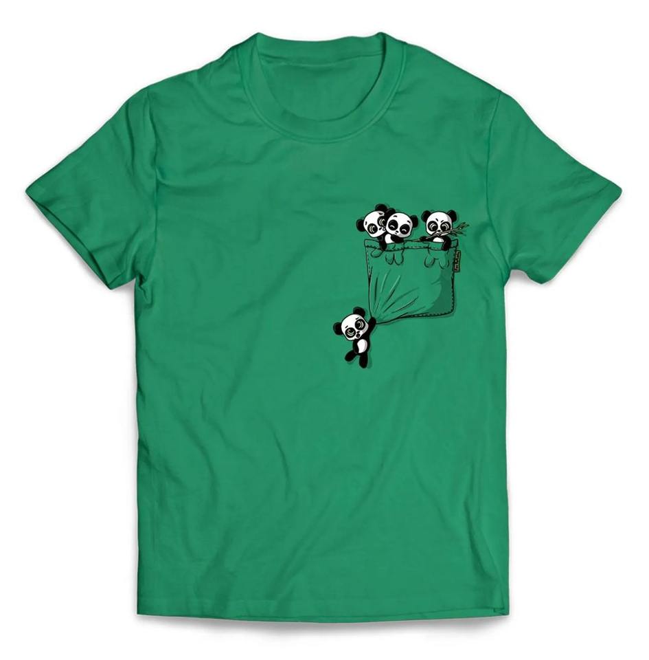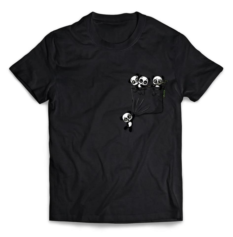 เสื้อยืดพิมพ์ลายแพนด้าสีดำสำหรับผู้ชาย เสื้อยืดลายการ์ตูนแพนด้าน่ารัก เสื้อยืดลำลองผ้าฝ้ายระบายอากาศได้ดี แขนสั้น สตรีทแวร์ คุณภาพสูง